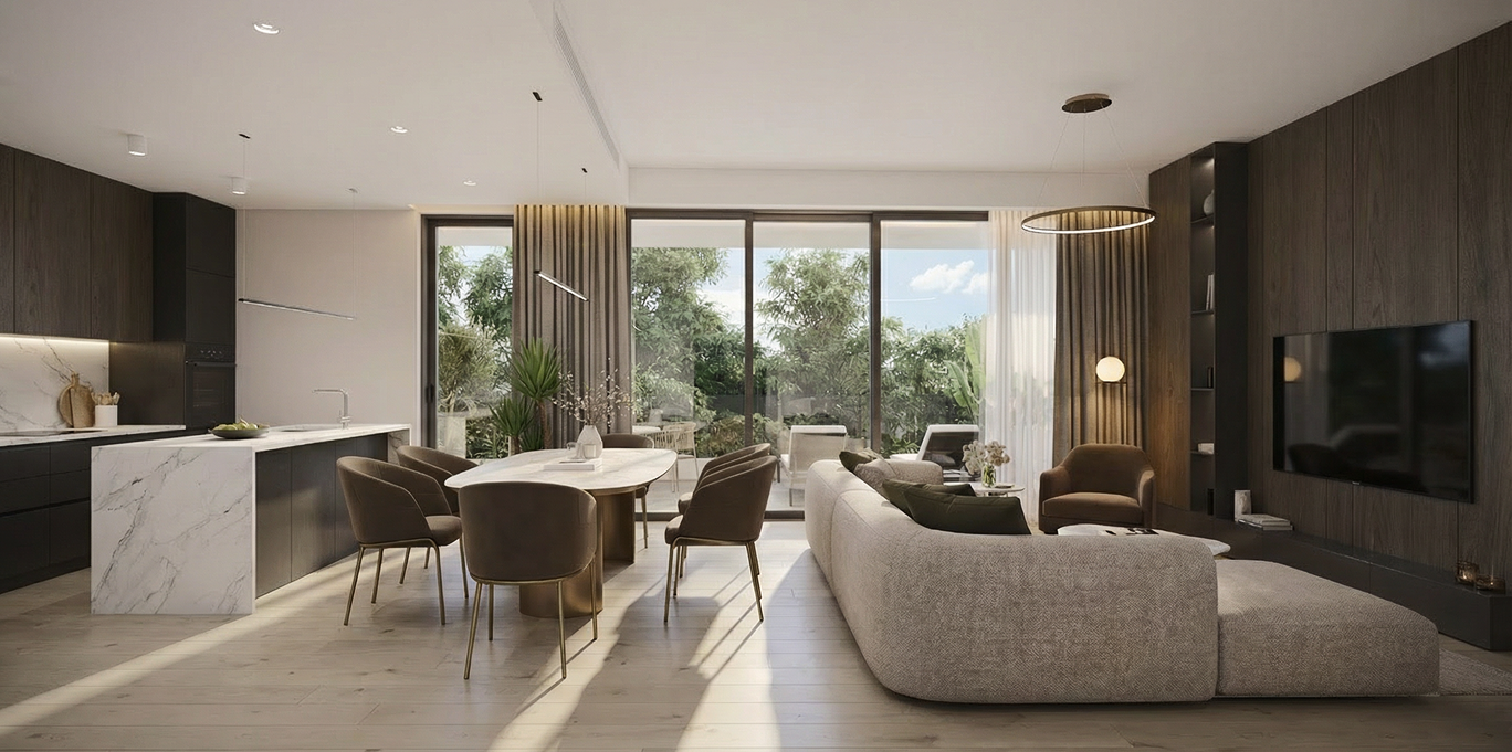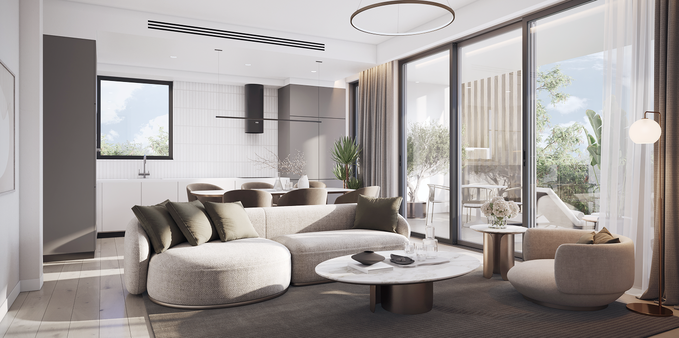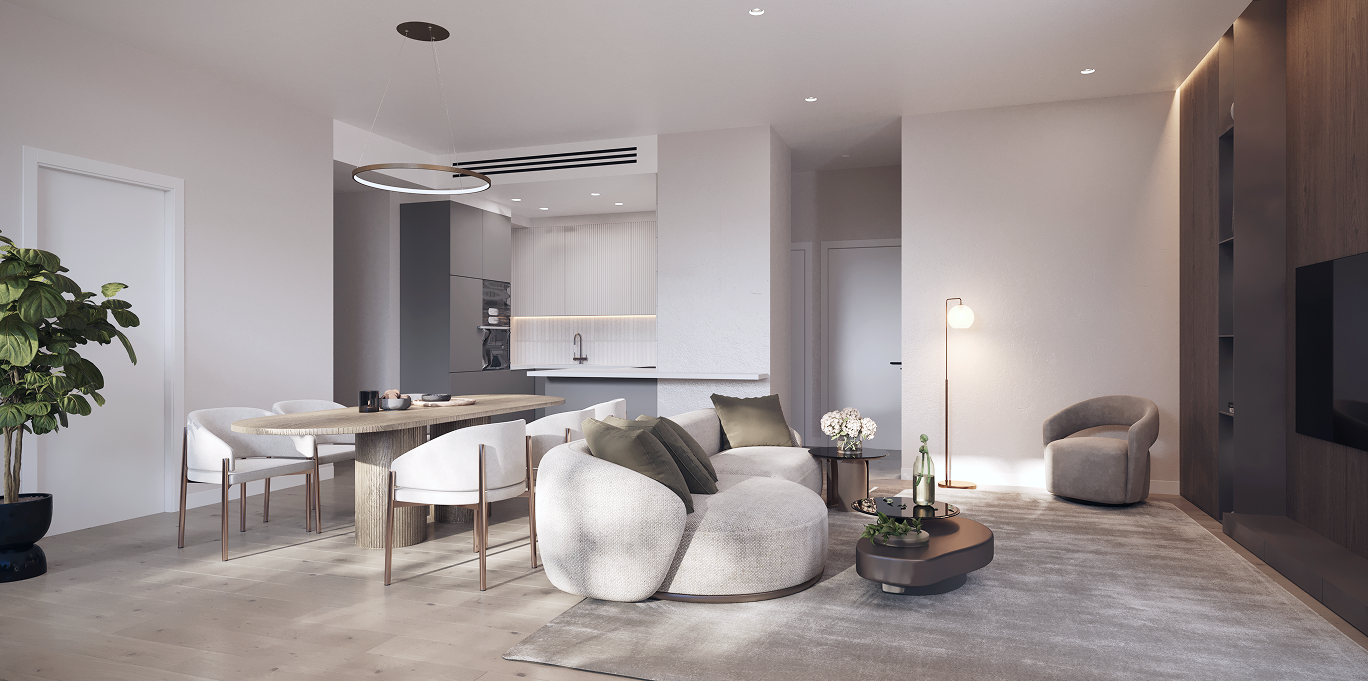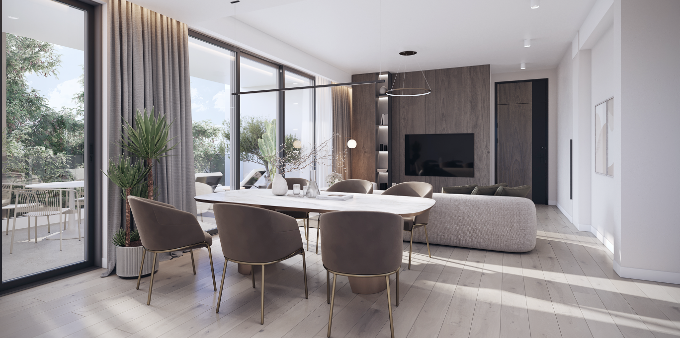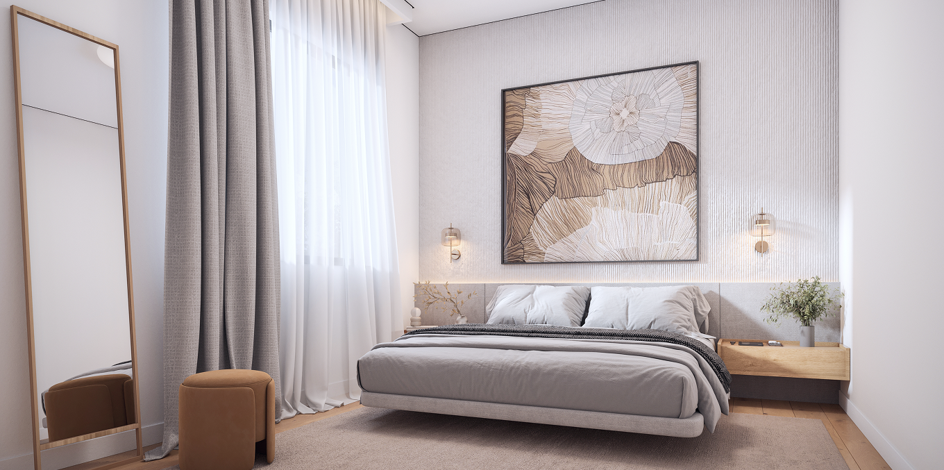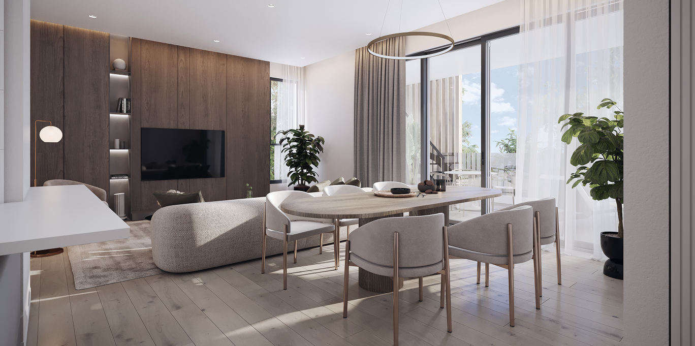 At the core of the project is thoughtfulengineering and next-generation comfort. Insulated facades and thermal windows ensure a stable indoor climate, while preparation for concealed air-conditioning and energy-efficient underfloor heating allows for a fully customized climate solution. Floors made of modern materials, along with eco-friendly kitchens and wardrobes, create a harmonious interior aesthetic.